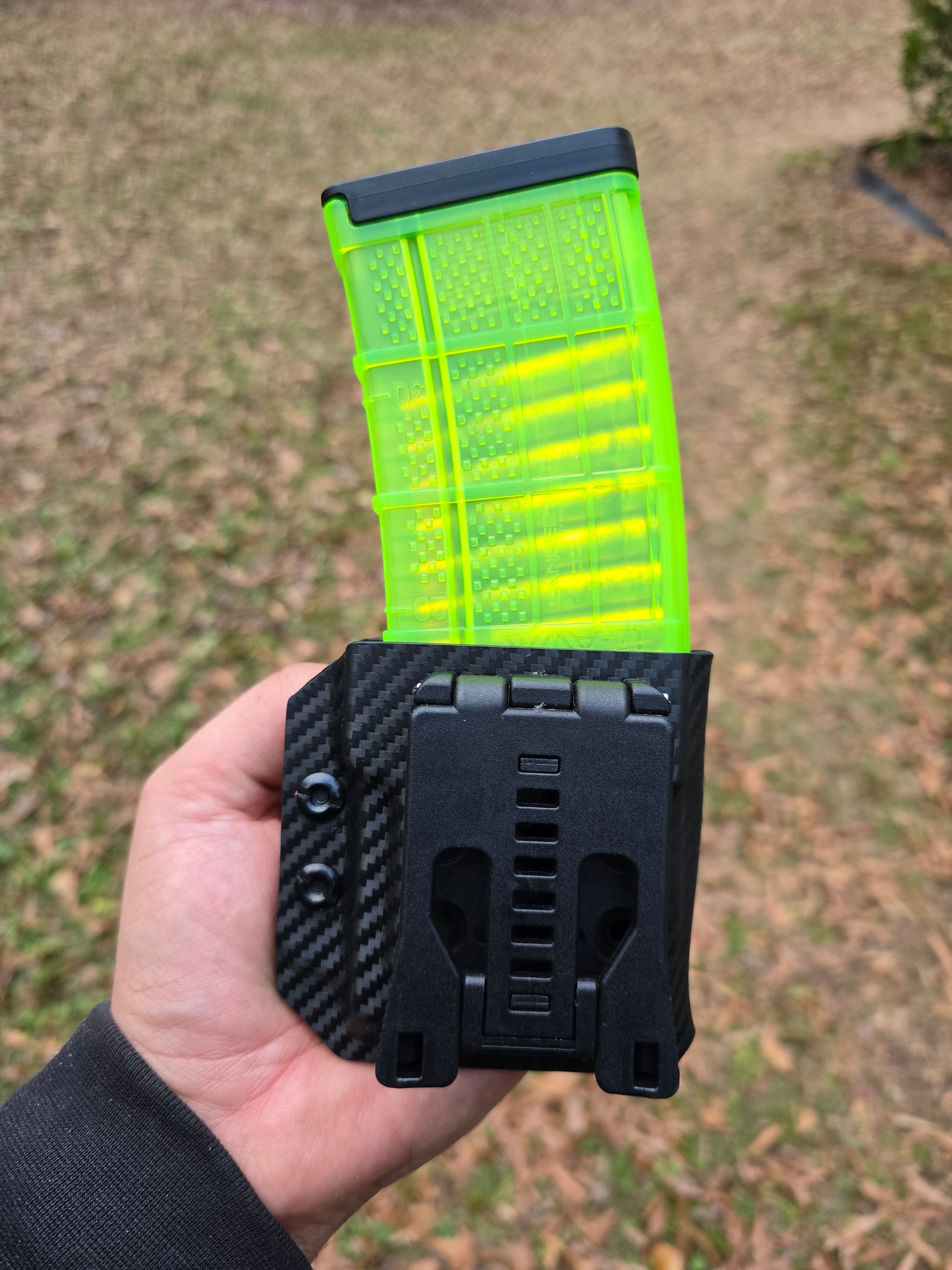 AR 15 magazine carrier comes with tek-Lok style clip, belt slide, molle compatible lock and closed belt loop but can also be compatible with much more