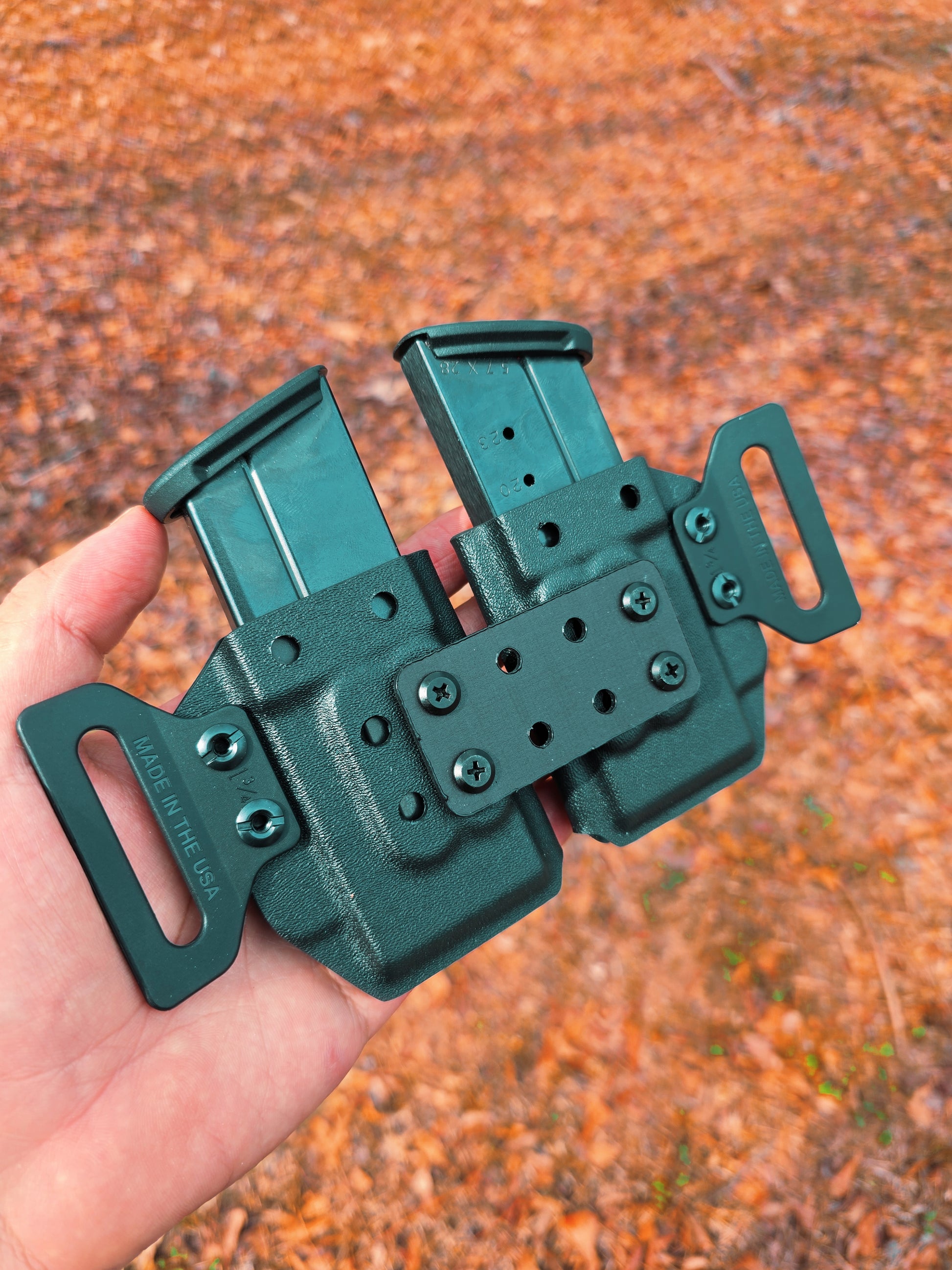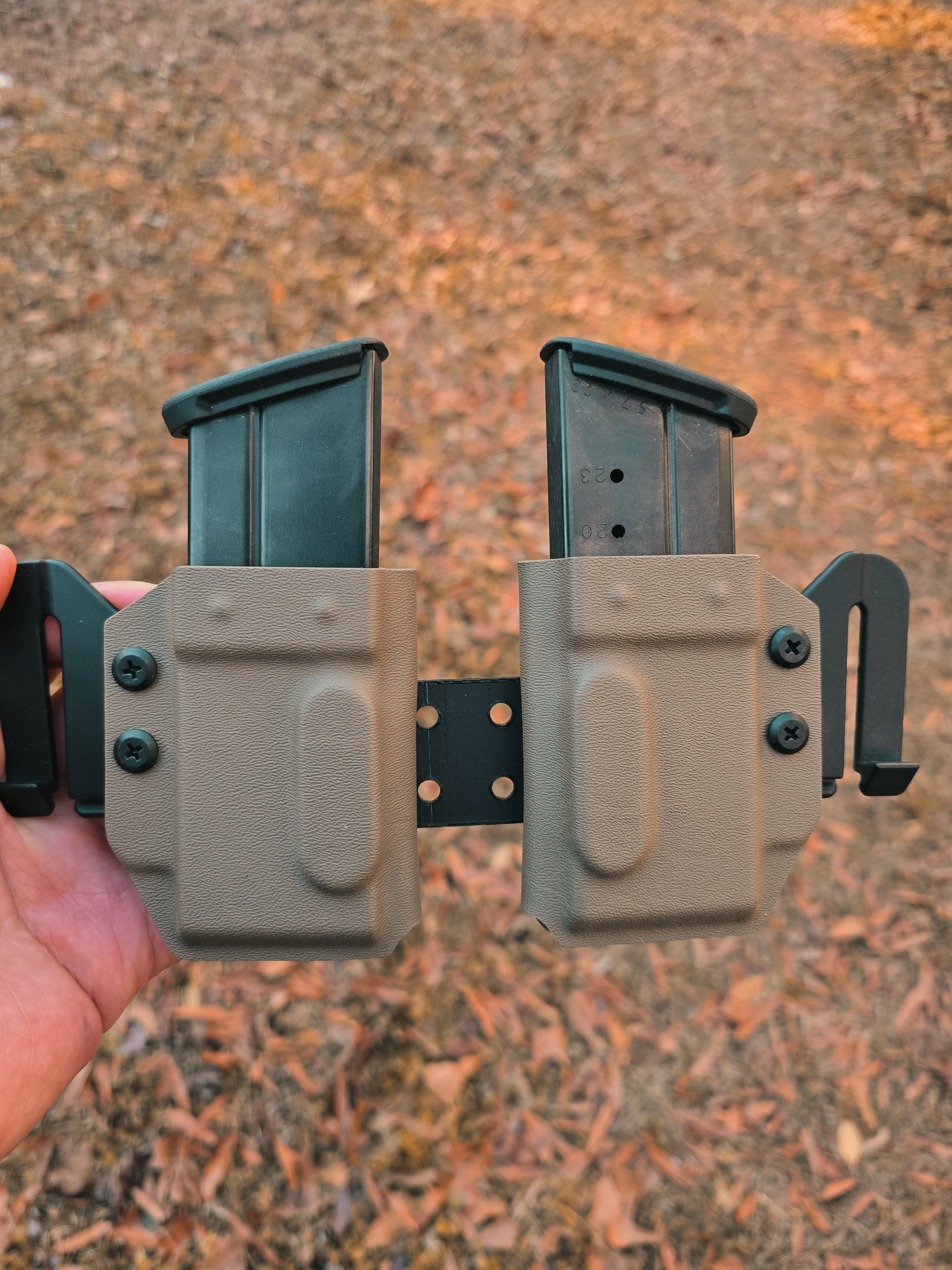 This is our dual magazine carriers for OWB with the tegris attachment to hold both carriers they can be removed and used independently for IWB-OWB its all part of our Phalanx Flex series
