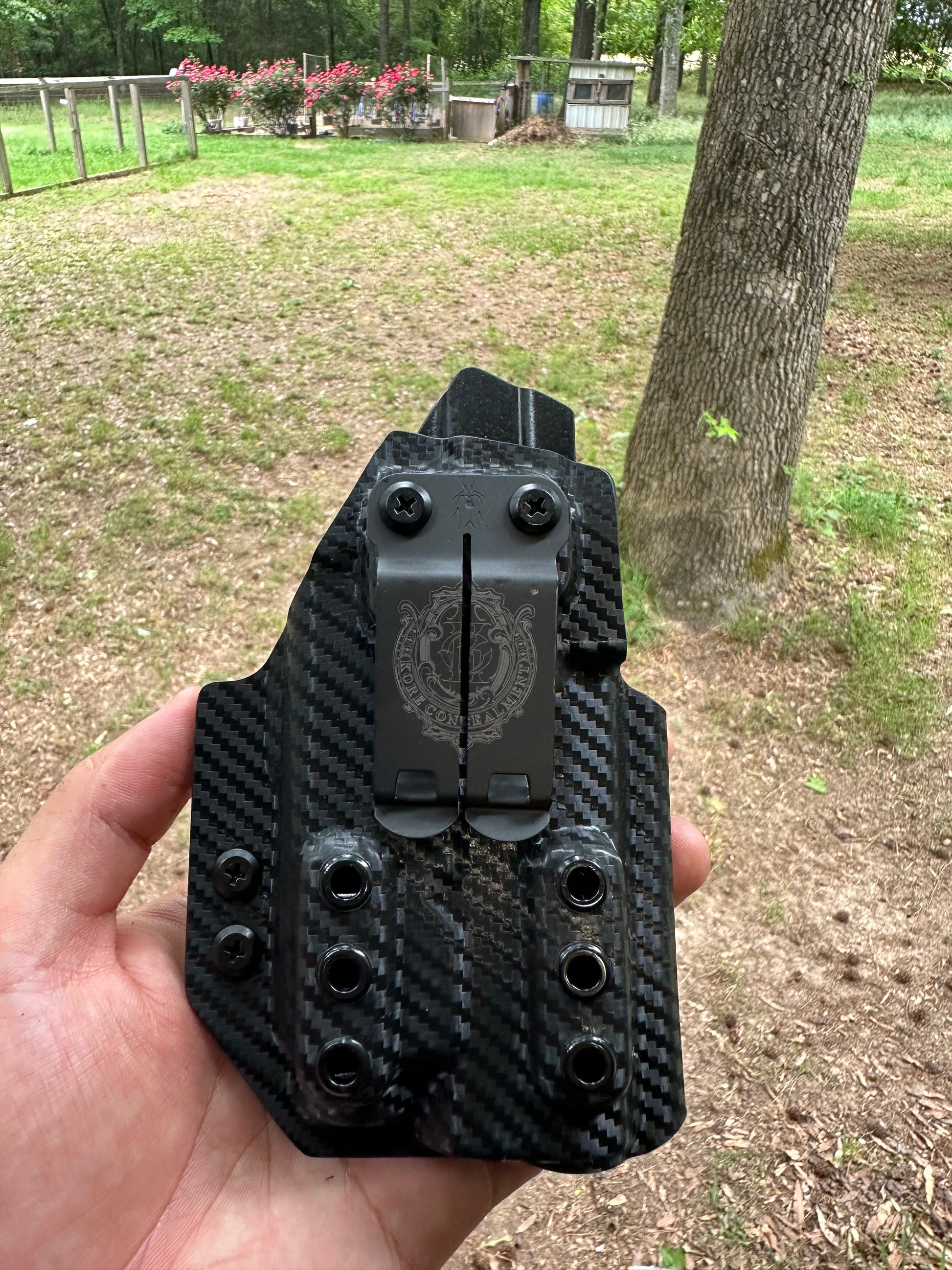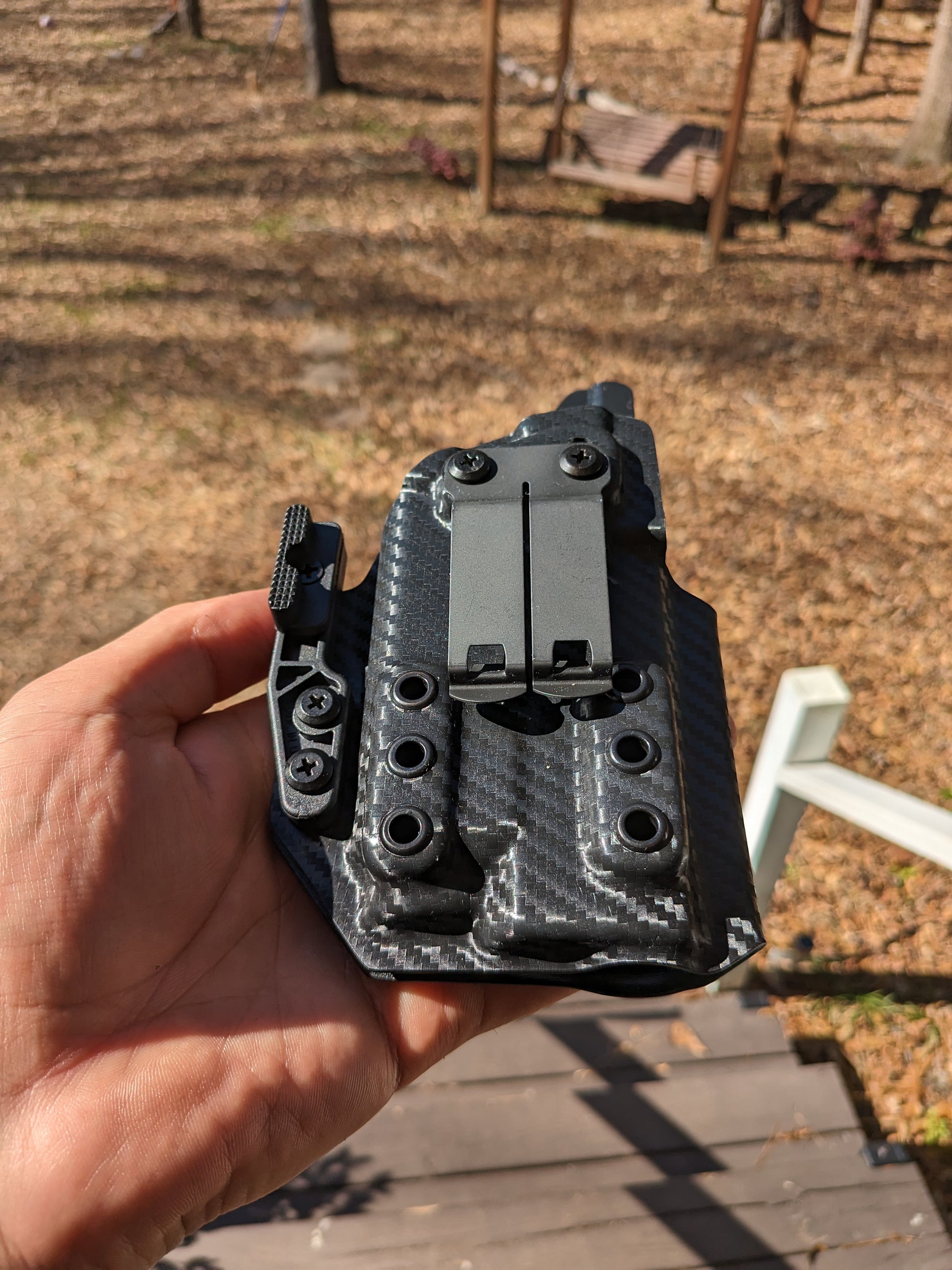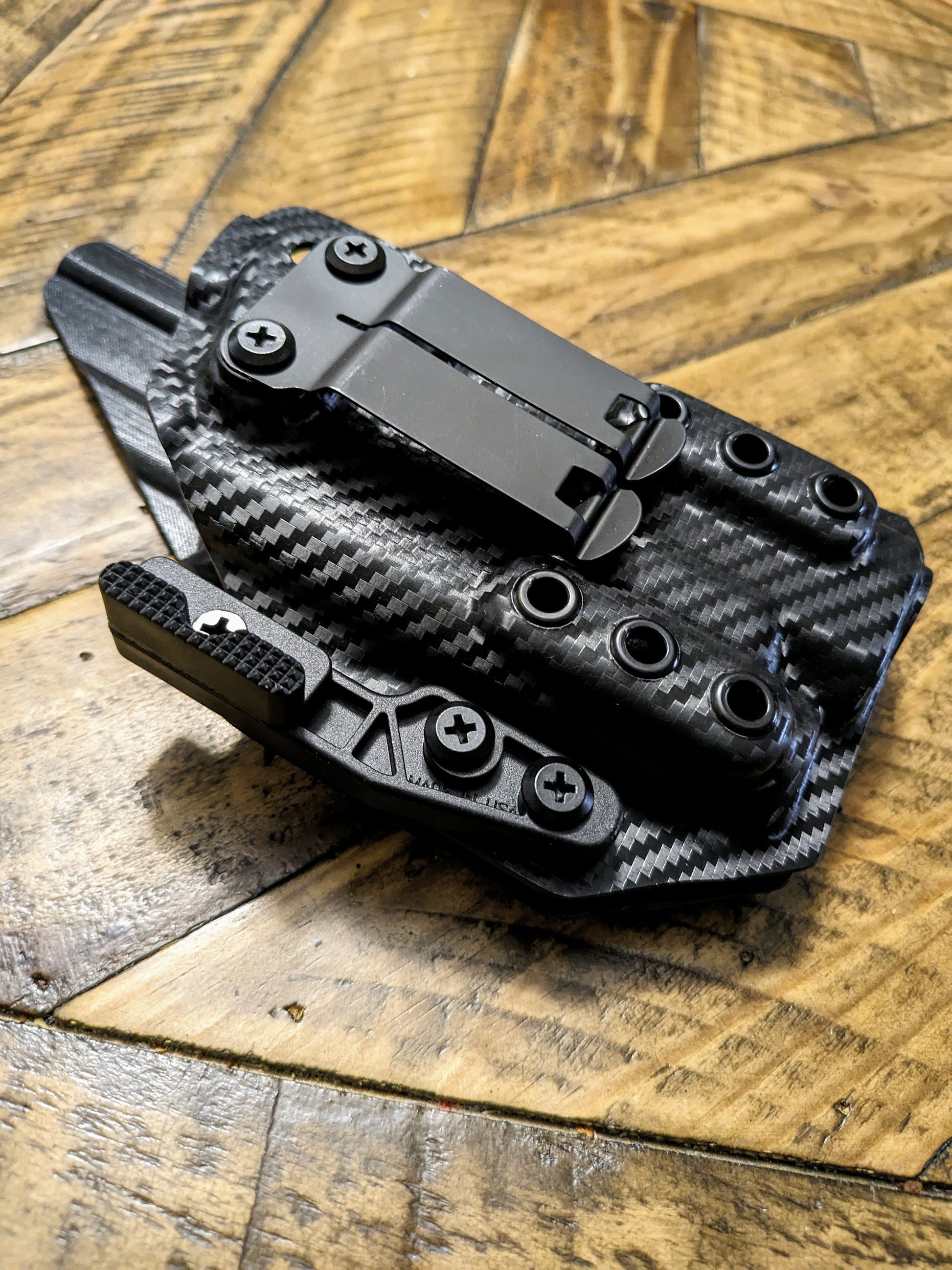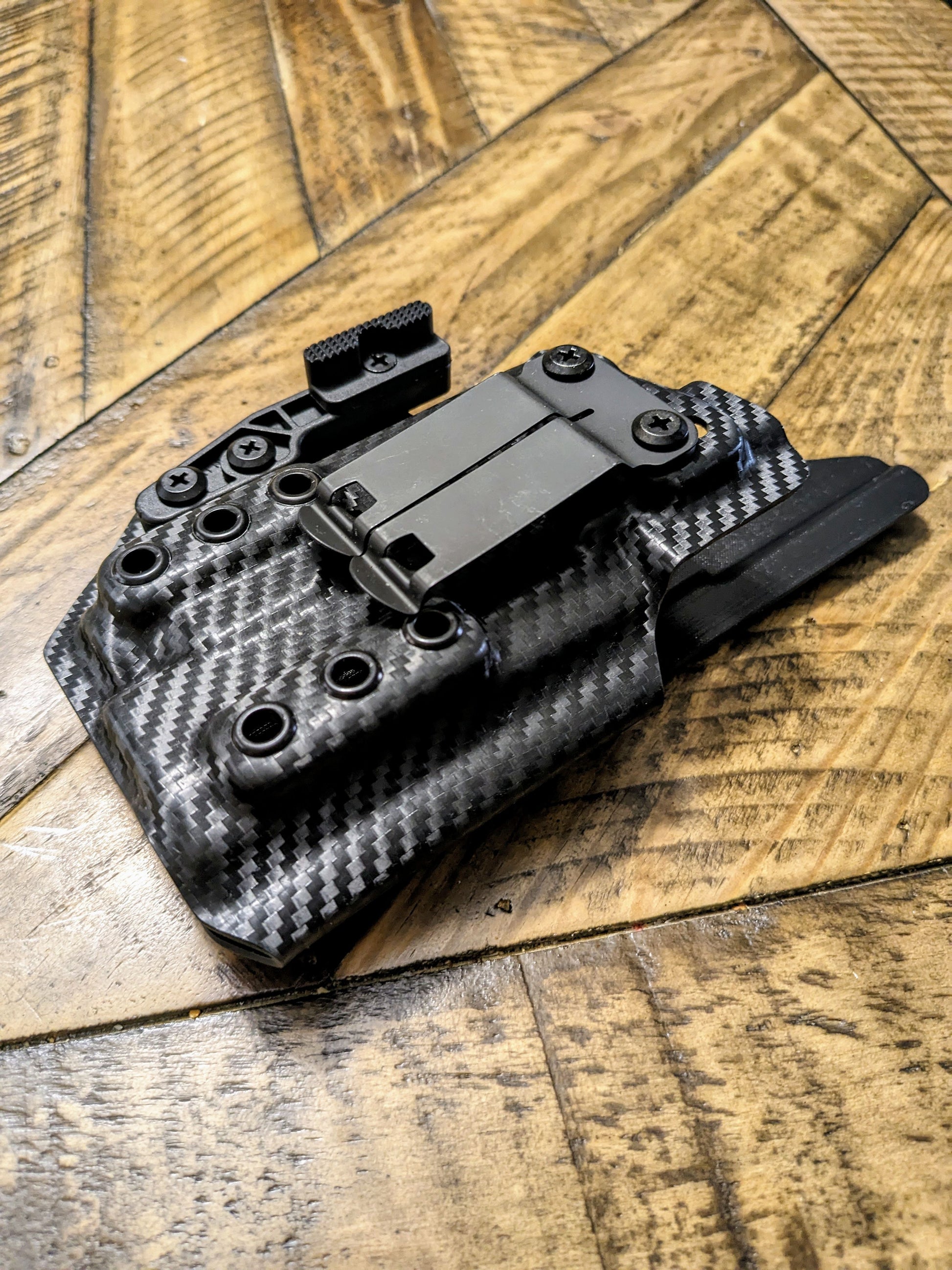Black Carbon Fiber with a full sweat guard and comes with a fomi clip only does not come with a appendix claw/wing we do offer it on our attachment section on the Home Screen